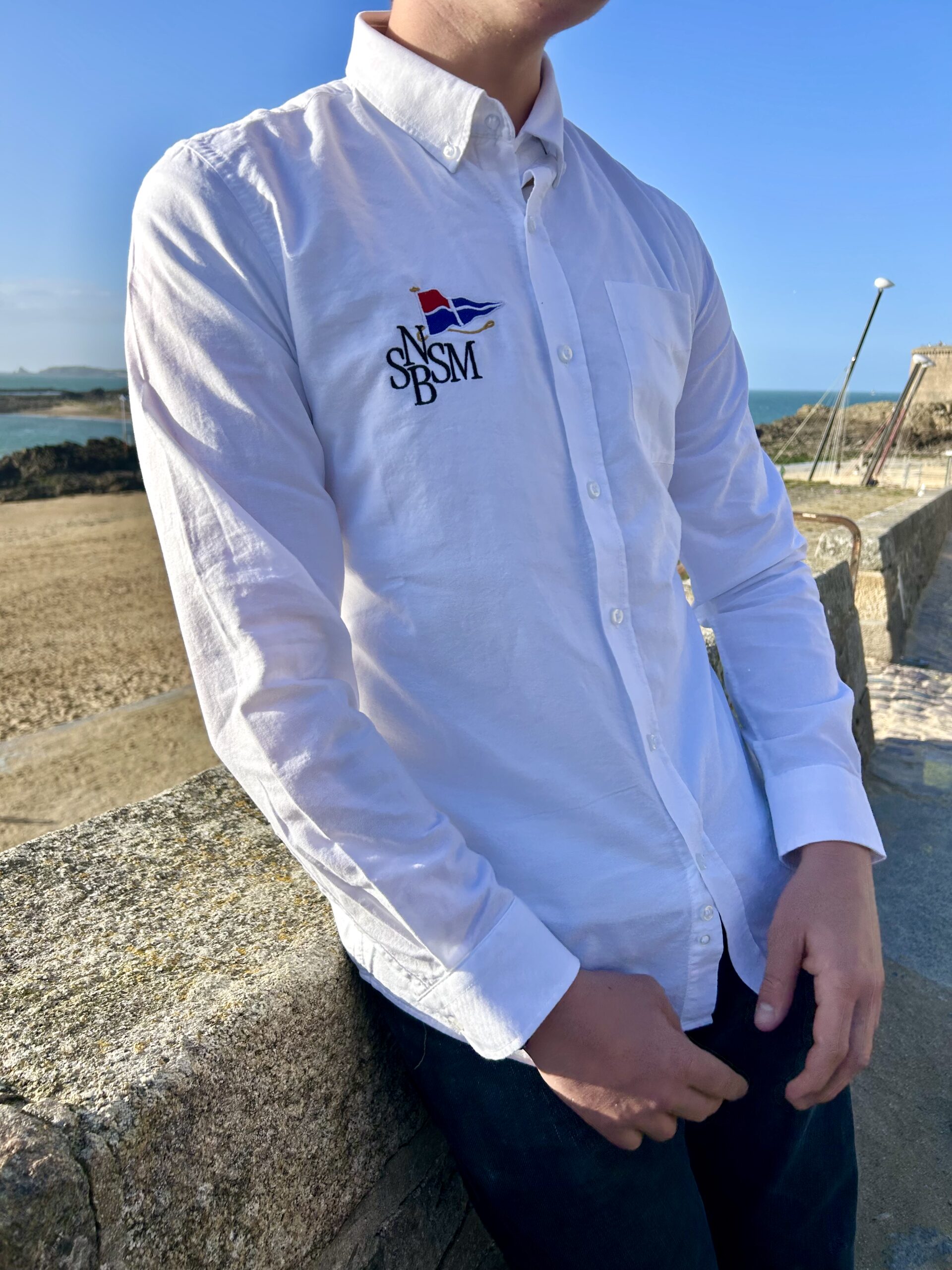 Chemise blanche homme en 100% coton, conçue pour allier élégance et confort. Elle présente un col américain boutonné, une patte de boutonnage américaine et des poignets à patte capucin qui lui confèrent une finition soignée. Sa coupe moderne ajustée offre une silhouette élégante tout en restant agréable à porter. Le logo du club est brodé côté droit de la poitrine, tandis qu’une poche discrète se trouve sur le côté gauche.